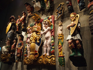 The first presents the history of both Sweden and Stockholm in particular - the gold room, with detailed collars and rings and bowls - and a fascinating video about the context of this; and further up the building, great presentation of medieval and baroque living, architecture and art. It was possible to spend much more time there than we had ... but we risked overload.